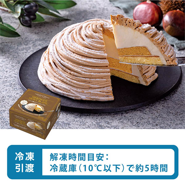 フランス産マロンを使用した濃厚なマロンクリームにやわらかな食感のムースとサクサクなメレンゲ生地を合わせた本格的なモンブランです。
