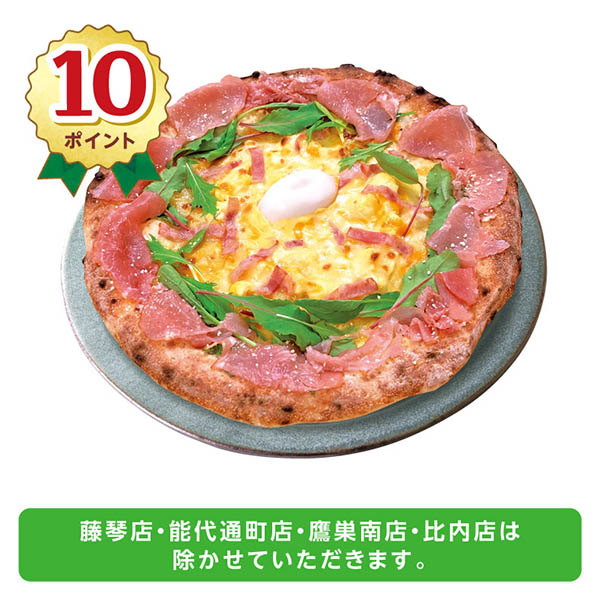 たっぷりのカルボナーラソースととろーり食感の半熟卵が「飲めるような食感」のビスマルクピザ!