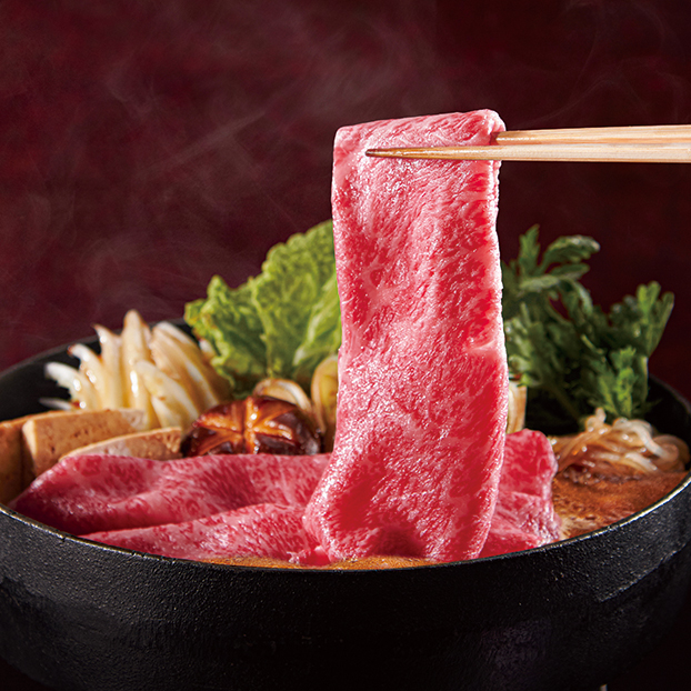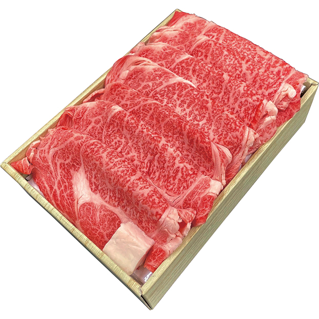 一頭一頭丹念に育てあげた黒毛和牛の旨味が濃厚で霜降りもある肩ロース肉をすき焼き用に仕上げました。
