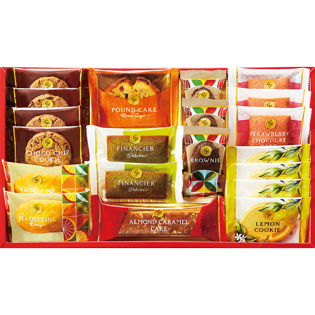 ■規格内容:チョコチップクッキー・レモンクッキー×各4、ストロベリーショコラケーキ・ブラウニー×各3、オレンジマドレーヌ・ピスタチオフィナンシェ×各2、ブラウンシュガーパウンドケーキ・アーモンドキャラメルケーキ×各1