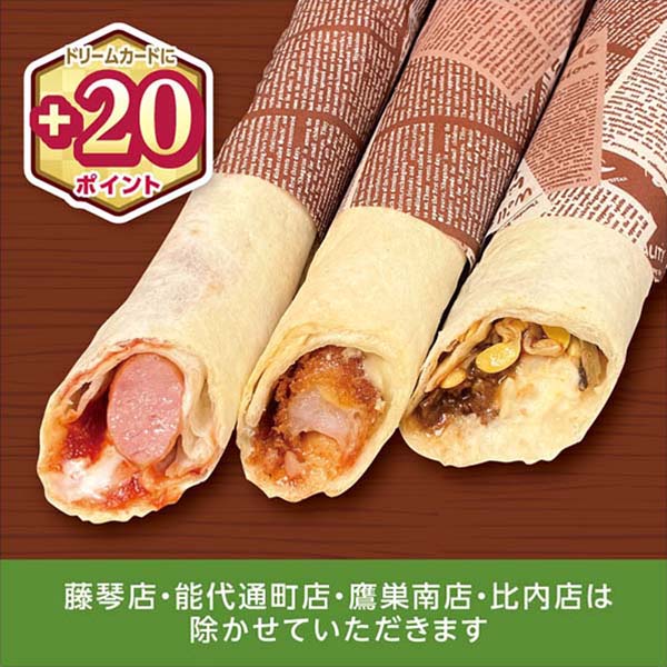 トルティーヤ生地で具材を巻き焼きあげたスティックタイプのピザ