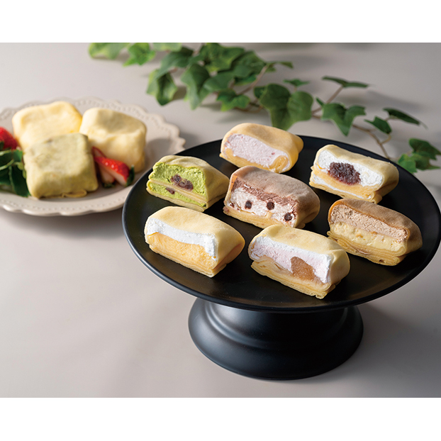 和菓子屋ならではの大福のようなもちっとした食感を再現しました。その風味豊かなクレープ生地で、甘さ控えめのホイップクリームを包みました。